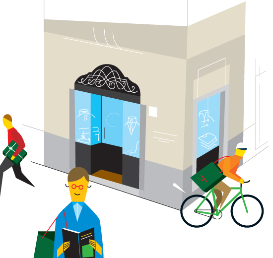 I've collaborated with select shops like A.Gi.Emme and ViWa drawing the decorations for the shop walls and show-windows.